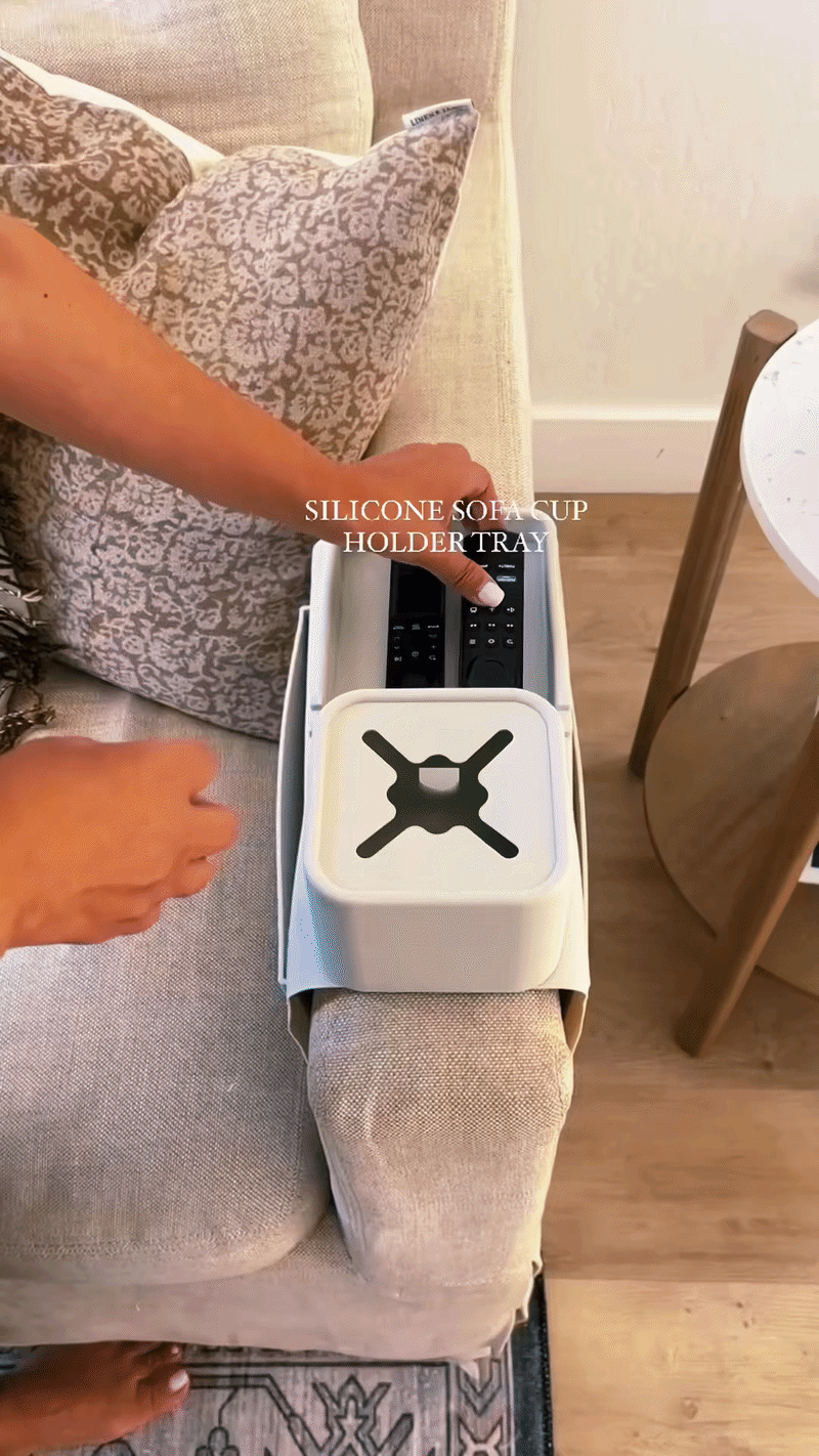 The tray is designed to fit most standard sofa and couch arms. The adjustable clip creates a secure hold without damaging the fabric or surface.